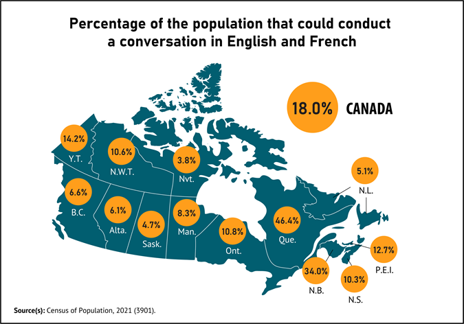 还有18%的加拿大人精通英法双语。