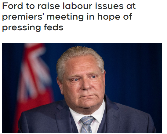 据报道,安省的省长福特计划在本周即将举行的全国省长会议上,提出移民和技术工人劳动力短缺的问题。