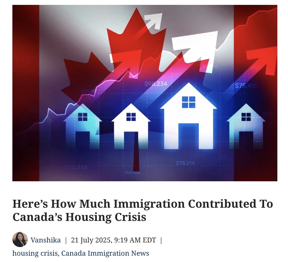 据当地媒体今日(7月21日)报道:2025年6月,由加拿大移民部和统计局联合发布的一项新研究,首次系统梳理了“新移民增长”与“房价与租金上涨”之间的关联。