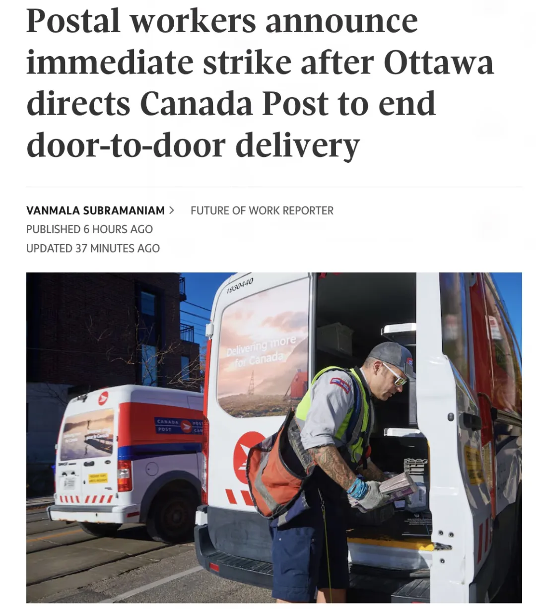 突发!Canada Post 工会宣布即刻启动全国罢工:上门投递或将终止,400万户民众受影响!