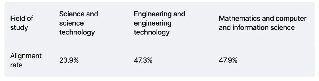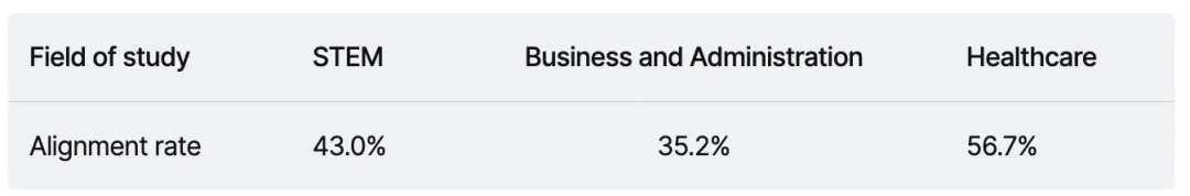 这意味着,即使对口率不及医护,STEM整体“被市场吸纳”的稳定性仍然更强。