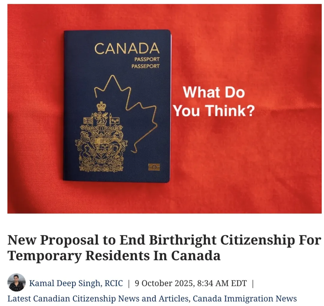 2025年10月8日,保守党提出了一项限制性建议:对于在加拿大出生但父母双方均为临时身份的儿童,不再自动授予公民权。