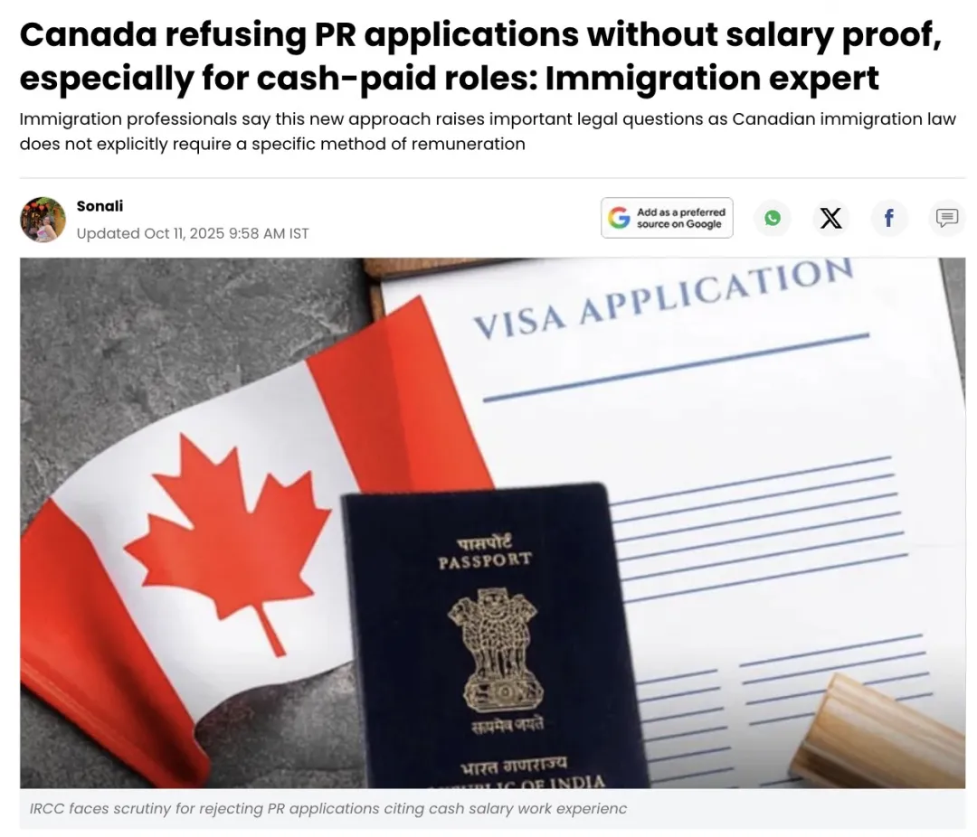 其实早在今年8月,部分移民媒体和律所就提醒:移民部IRCC 对现金工资相关材料的审查在收紧,申请人仅凭一封雇主证明信已难以说服签证官,最好辅以工资单、银行入账凭证、税务记录等第三方可核验材料。