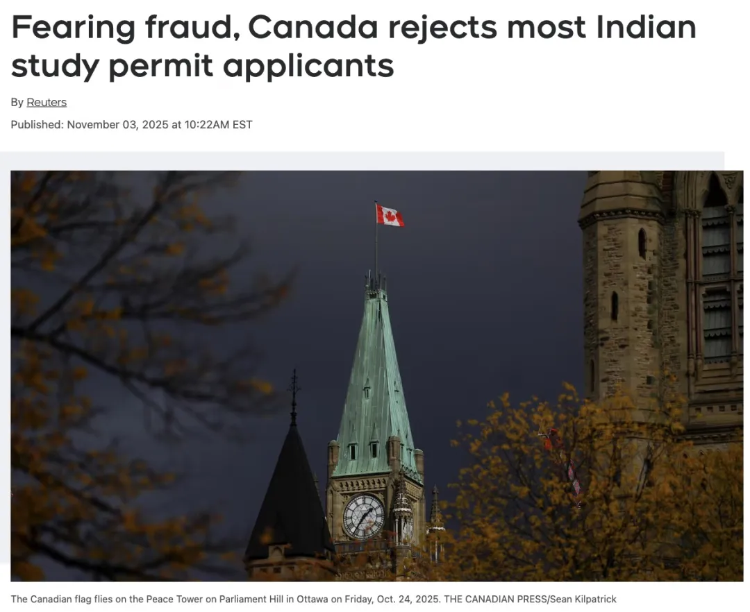 据加拿大移民部提供的数据,仅在 2025年8月,印度学生申请赴加拿大学习的学习许可(study permit)中,就有约74% 被拒签——而一年前的拒签率仅为32%。同期,中国学生的拒签率为24%,总体拒签率为40%左右。