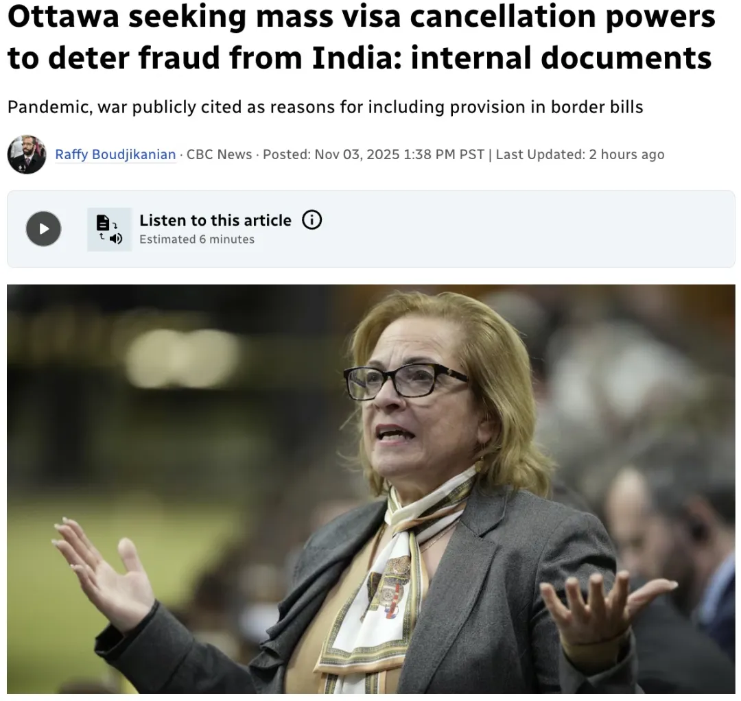 今天(11月3日),CBC News 披露来一份移民部内部文件:加拿大政府正在推动立法,寻求获得“大规模取消签证的权力”。