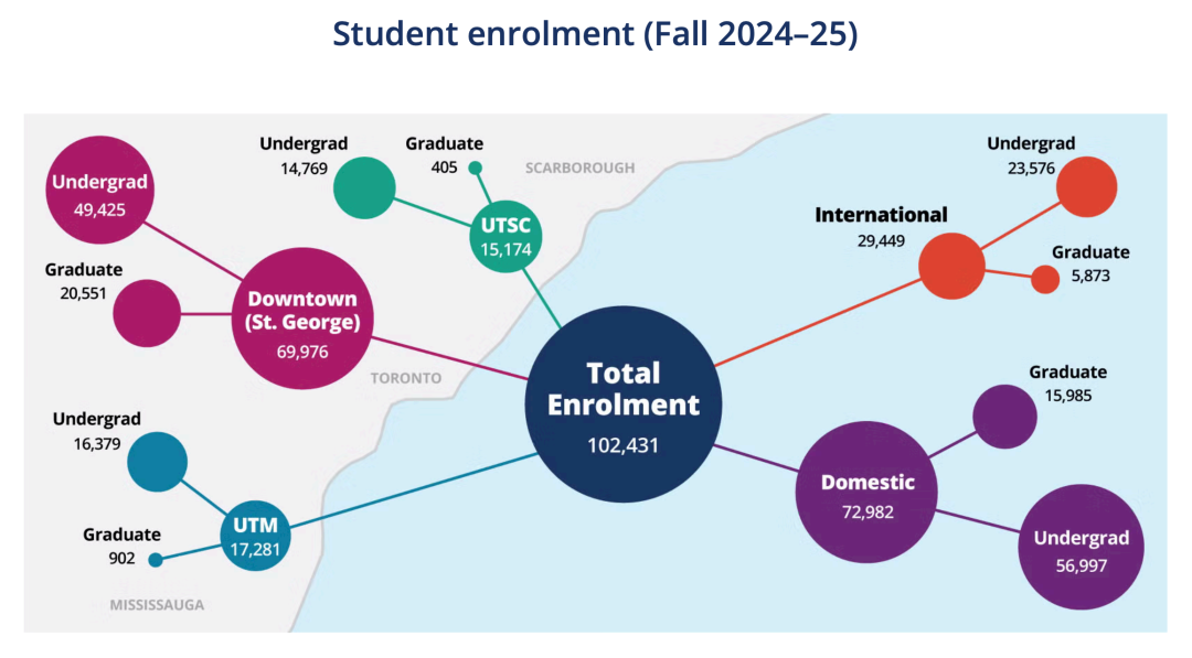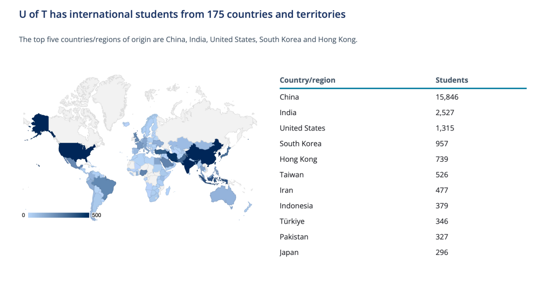 即便是北美规模最⼤的多伦多⼤学(UofT),在超过10万名学⽣中,留学⽣约2.9万⼈。