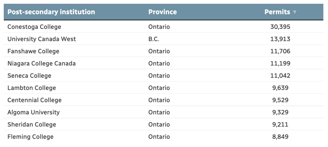 加拿⼤⼴播公司(CBC)披露的数据揭⽰了答案。在2023年加拿⼤接收留学⽣排名前⼗的“学院(College)”中,排名第⼀的Conestoga学院,⼀年就接收了3万名留学⽣——这个数字是多伦多⼤学年招收国际⽣数量的6倍!