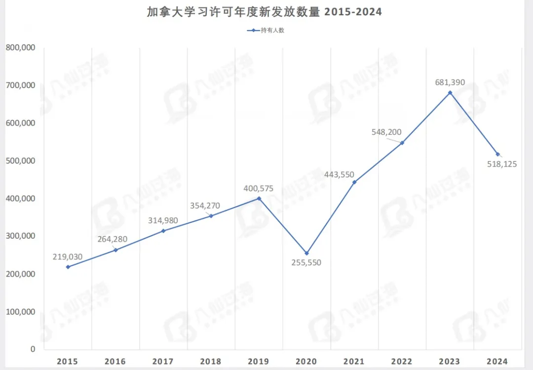 通过这些数据,我们可以很清晰地看出加拿大学习许可的变化曲线: