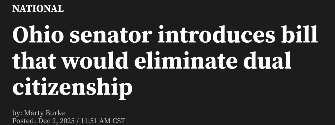 12月2日,美国政坛传来一个重磅消息——俄亥俄州共和党联邦参议员伯尼·莫雷诺(Bernie Moreno)正式提出《2025排他性公民法案》(Exclusive Citizenship Act of 2025),其核心内容是——美国将不再允许双重国籍。