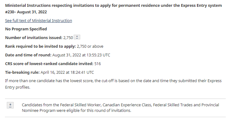本次邀请同样是不区分具体项目的,加拿大经验移民、联邦技术移民、联邦技工移民以及部分省提名申请人,只要分数达到了,都有资格获邀。