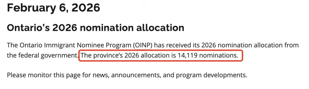 2月6日,安大略省移民部官宣,2026年从联邦处获得了14,119个省提名配额,较去年增长了31%。
