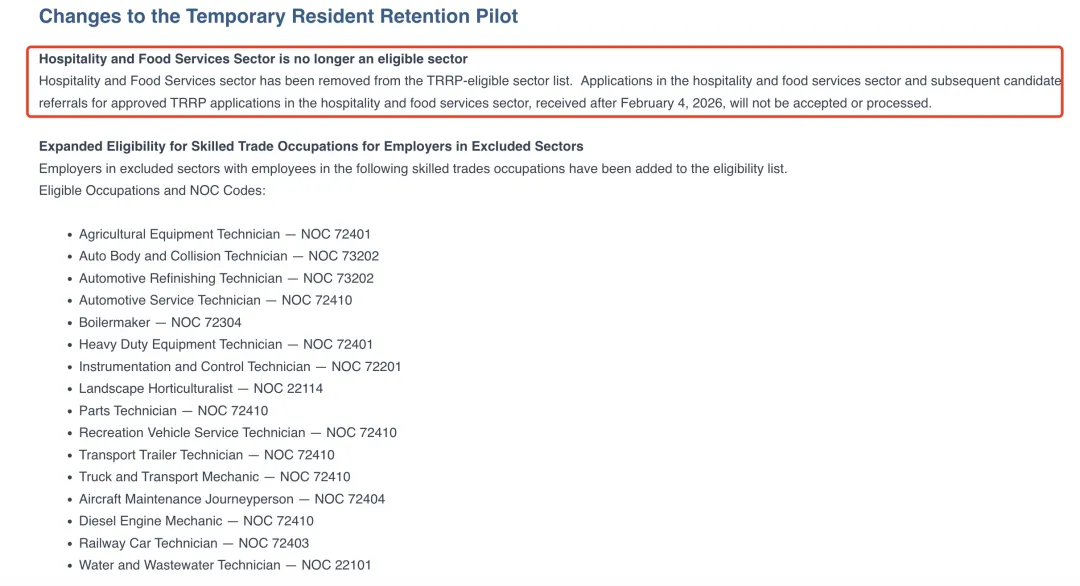 曾几何时,“厨师移民”、“服务员拿身份”,几乎是很多人眼中最现实、也最容易的一条移民加拿大的途径。 餐饮行业门槛低、需求大、岗位多——无论是中餐馆的厨师,还是连锁餐厅的服务员、后厨、店长,都曾是省提名与雇主担保移民中的常见主角,也因此留下了无数关于“会做饭就能移民”、“端盘子也能移民”的戏谈。 但这条曾经被视为“最接地气”的移民路径,如今正在迅速改变。 2026年2月,曼尼托巴省一项看似技术性的政策更新,首次明确将餐饮与酒店行业排除在移民试点项目之外。 而这并不是一次孤立事件,而是过去三年加拿大移民政策调整的集中体现——从联邦收紧低薪LMIA,到各省降低服务业优先级,再到曼省直接“一刀切”,这条“餐饮-就业 - 移民”的通道,正在悄然走向终点。 夸张一点说:一个时代,正在结束。 2026年2月4日,曼尼托巴省更新“临时居民留存试点项目”(Temporary Resident Retention Pilot)政策——顾名思义,这个在2025年9月才推出的新项目,专门针对境内已有工作的临时居民,目的就是解决本地雇主核心员工留存难题。 本次改革,官网一句话非常直接: Hospitality and Food Services sector is no longer an eligible sector 也就是说——餐饮与酒店行业,不再属于可申请移民的行业。 政策变化非常明确: 2026年2月4日之后,餐饮行业新申请不再受理:雇主推荐与候选人提名同步停止;行业从“可申请”变为“不可申请”。 但政策同时保留一个例外:若属于指定技工职业(主要是各种机械、维修、设备等技师岗位),即使在餐饮行业工作,仍可申请。 这一细节释放出清晰信号——政府在削弱服务业移民路径的同时,强化技术与产业岗位。 可以说,这是近几年最明确的一次“直接去餐饮化”政策落地。 2024年:联邦先卡低薪入口 2024年09月26日起,低薪 LMIA 若工作地点在失业率 ≥6% 的都市区,将被拒绝处理(refusal to process)。 餐饮作为低薪岗位集中行业,首当其冲。自此,低薪LMIA被迫减少,餐饮-工签-移民路径开始变窄。 2024年:萨省关闭餐饮专门项目 2024年08月30日,萨省政府对SINP做出结构调整,推出新的行业人才通道,农业/医疗优先。同一波调整中,原 Hospitality Sector Project 等旧项目被关闭,退出主舞台。 也就是说,萨省省提名中的餐饮类从“被专门支持”变为普通行业,优先级明显下降。 2025年:萨省对餐饮类设置上限 降级似乎还不够,萨省在半年后又对餐饮进行了进一步的限制: 这是非常典型的“配额硬上限”型收紧,虽然不是全关,但再也不能随心所欲发展。 2025年:BC省邀请偏好设置 2025年4月14日,BC省官宣,有限的省提名配额多数将用来处理存量申请,少量配额将只集中向高薪/优先岗位发放——医疗行业、企业家、高经济影响类技术人才。 2026年:曼省率先点名“剔除” 2026年2月,曼省直接将餐饮和酒店管理类点名排除出试点项目。 与此同时,由于行业上限存在,餐饮类在部分省份往往是名额“开窗即满”——通道仍在,但现实中极难进入。 从联邦政府以及各省的“收紧”,再到曼省官宣“剔除”行业申请资格,加拿大移民对餐饮类申请人关门的倾向非常明显。 一系列政策调整之下,很多人都会产生同一个疑问:为什么是餐饮业? 从理性的角度来看,这并不是针对某个行业的单点变化,而是移民结构整体调整的结果。 过去十年,餐饮逐渐成为临时居民最集中的行业之一——留学生、毕业工签持有人以及外籍劳工高度聚集于此。 岗位流动性大、培训周期短、工资水平相对较低,使其长期承担“吸纳劳动力”的功能。 当政府开始压缩临时居民规模、提高移民质量门槛时,这一类低门槛服务业,自然成为最先被削弱的领域。 与此同时,各级政策资源正在明显向更具经济支撑力的行业倾斜:医疗护理、技工与蓝领、建筑与基础设施、教育支持以及科技类岗位,逐渐成为移民体系的新主线。 本质上,加拿大的移民政策始终服务于劳动力市场与经济发展的需要。在“疫情后用工荒”逐渐缓解之后,由此积累形成的“临时居民泡沫”,需要通过政策调整逐步消化。 在这样的背景下,加拿大的移民逻辑正在发生转变——从“能就业”,转向“能创造价值”。 说得更直白一点,就是通过政策引导,让餐饮、酒店等基础服务岗位逐步退居边缘,而由医疗、技工、科技、教育等具备产业支撑力的行业填补核心位置。 加拿大不再只需要“能工作的人”,而是更需要能够支撑经济结构的人。 未来的移民,不再只是“有没有工作”这么简单,而是你的职业/工作,是否被这个国家真正需要。 对加拿大移民感兴趣?欢迎咨询我们的顾问baxianchuguo