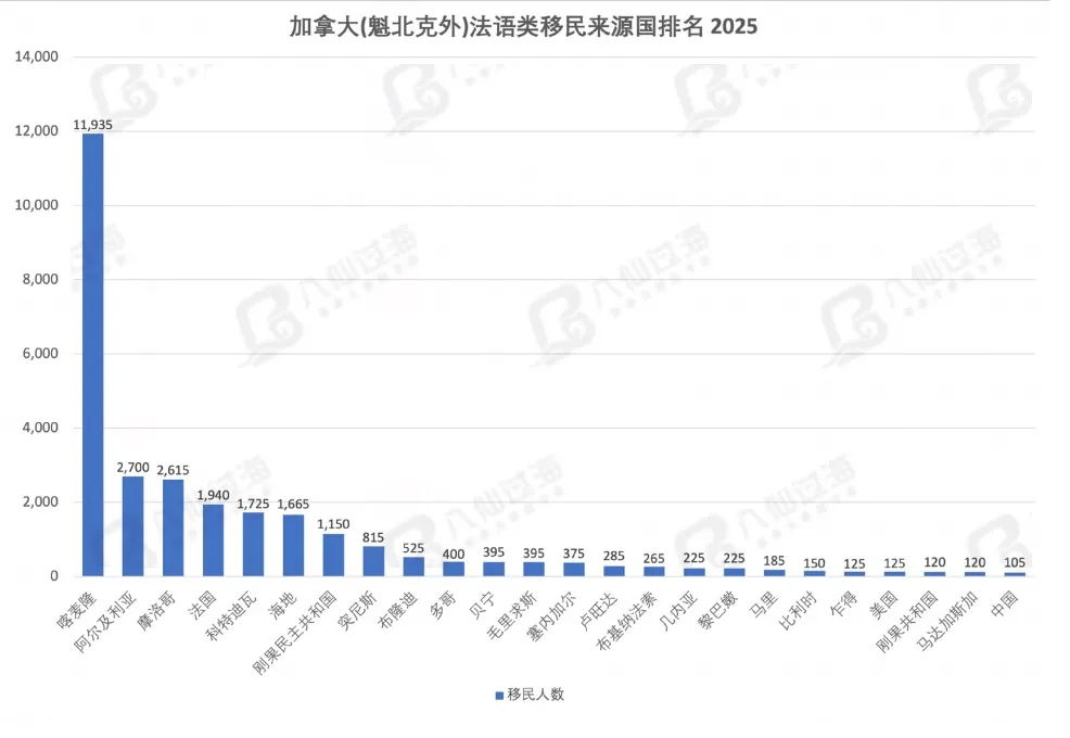 在这一背景下,加拿大近年来强化来源多元化与法语移民战略,并已将魁省外法语移民目标提高至2028年的10.5%。在人口红利与政策导向的双重作用下,非洲在加拿大移民结构中的占比,未来仍有继续上升的空间。
