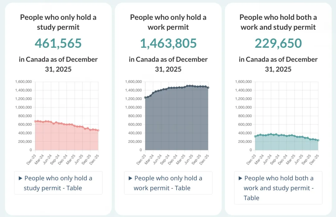根据加拿大移民部的统计,截至2025年12月31日:
