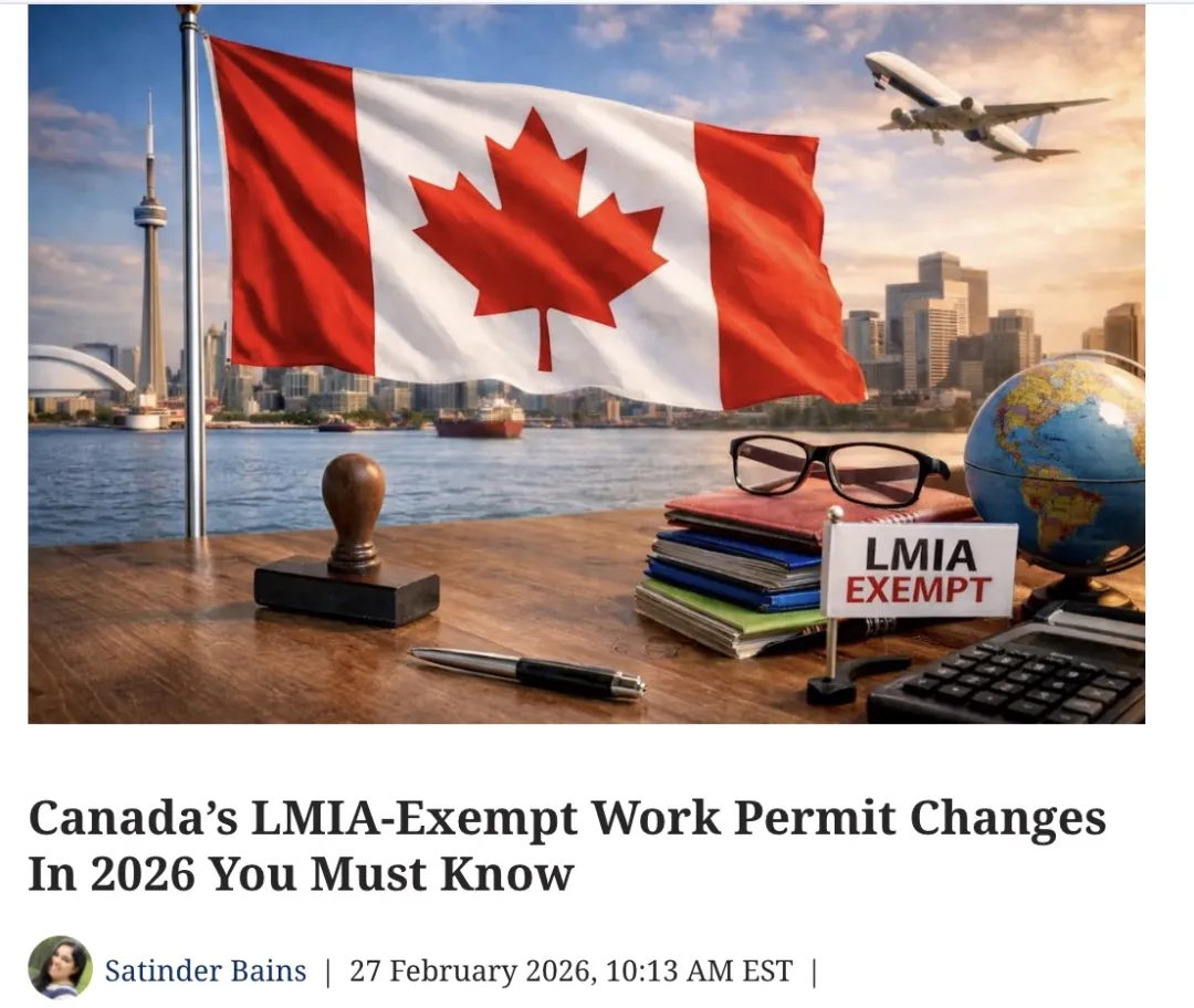 前两年,政府的调整重点主要集中在 LMIA 类工签;而进入 2026 年,政策重心明显转向 LMIA 豁免体系本身。