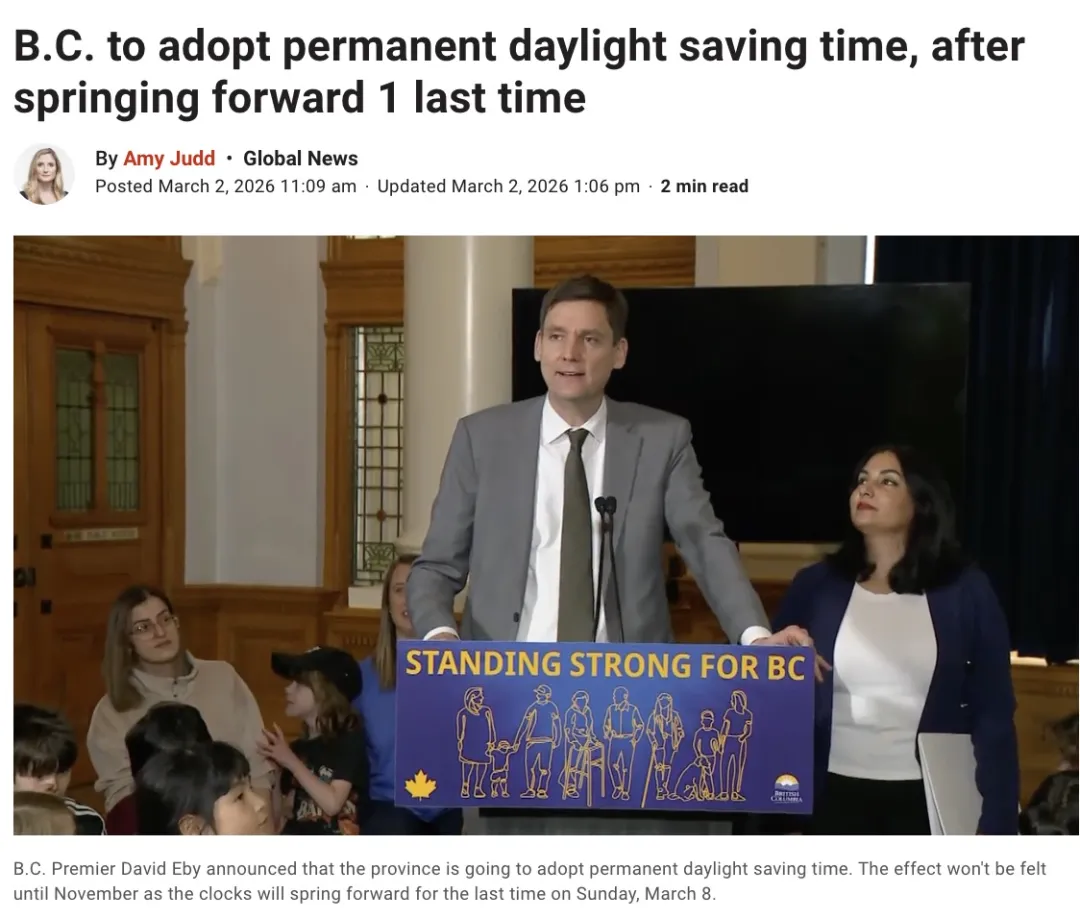 不再等美国!BC省“永久夏令时”落地,影响远不止调表!