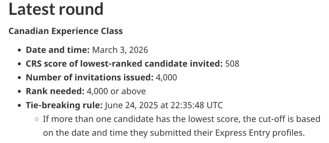 CEC权重明显回升,加拿大本地经验价值上升。如果申请人CRS在合理区间(500分左右)、工作经验真实稳定、职业不在明显“边缘化”领域,那么其上岸机会明显好于2025年。