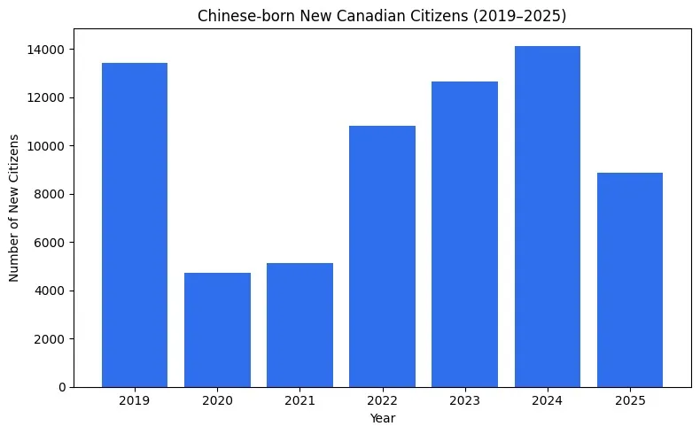 尽管2025年的入籍人数出现回落,但总体来看,每年仍有接近30万人加入加拿大国籍。