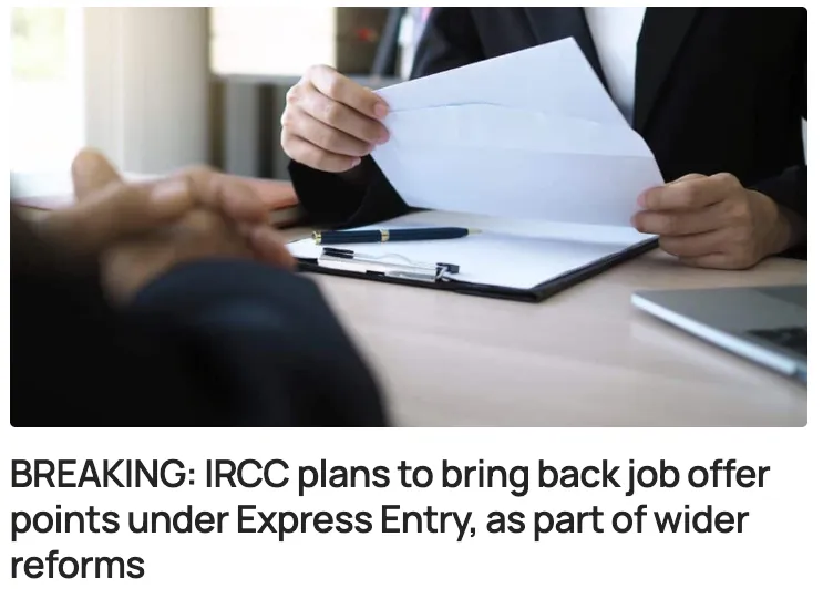 为 Job Offer(雇主工作机会)和高薪职业的加拿大工作经验增加积分;