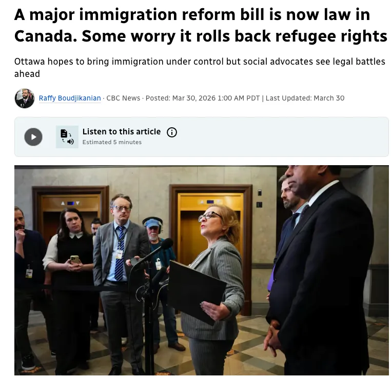 先是3月26日,C-12法案正式获得御准,成为法律。这项法案,直接改写了加拿大庇护系统的游戏规则。导致的结果之一就是近2万份庇护申请,将失去进入正常审理程序(RPD)的资格。