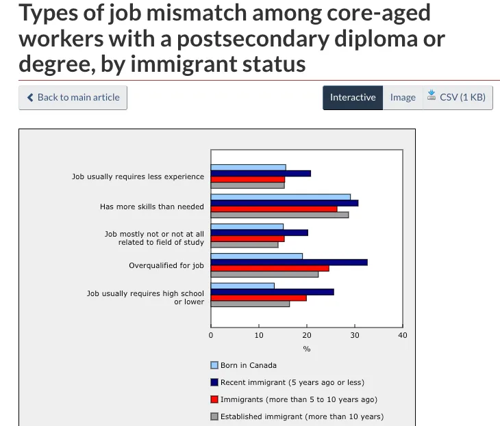 但问题在于,“找到工作”,并不等于“找到一份与学历和专业匹配的工作”——在同一时间,加拿大统计局发布的另一项研究,让这一结论出现了明显“反转”。