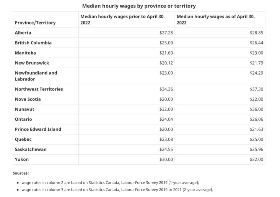 如上图所示,在BC省,2022年4月30日以后,时薪高于26.44加币属于高工资职业,低于该标准则属于低工资职业。